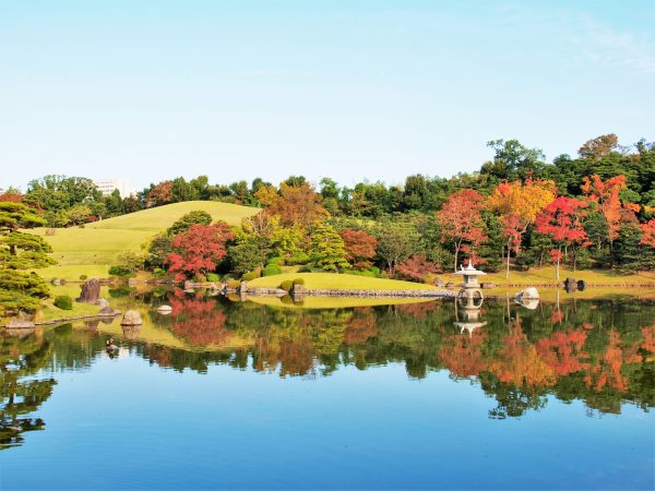 特徴:北大阪を代表する大規模公園。日本庭園の紅葉が人気。