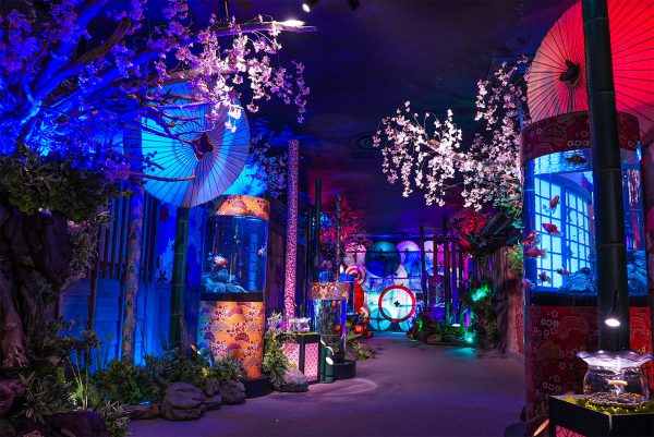 特に注目なのが、幻想的な照明とアート空間が融合した「金魚ミュージアム」。