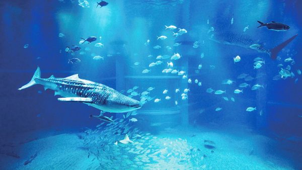 大阪湾を望む天保山エリアに位置し、世界最大級の水槽「太平洋」ではジンベエザメが悠々と泳ぐ姿を間近で見ることができます。